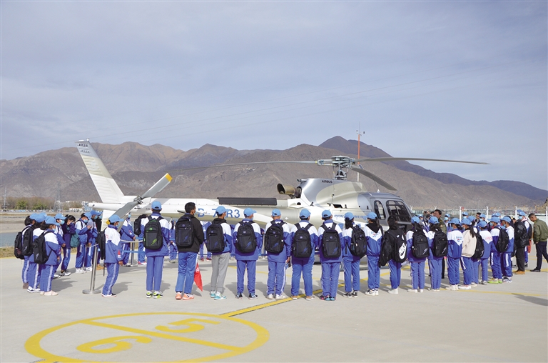 拉薩市中學(xué)生開展“游學(xué)幸福新拉薩 共筑美麗中國夢”主題研學(xué)實(shí)踐教育活動(dòng),參觀高原直升機(jī)。