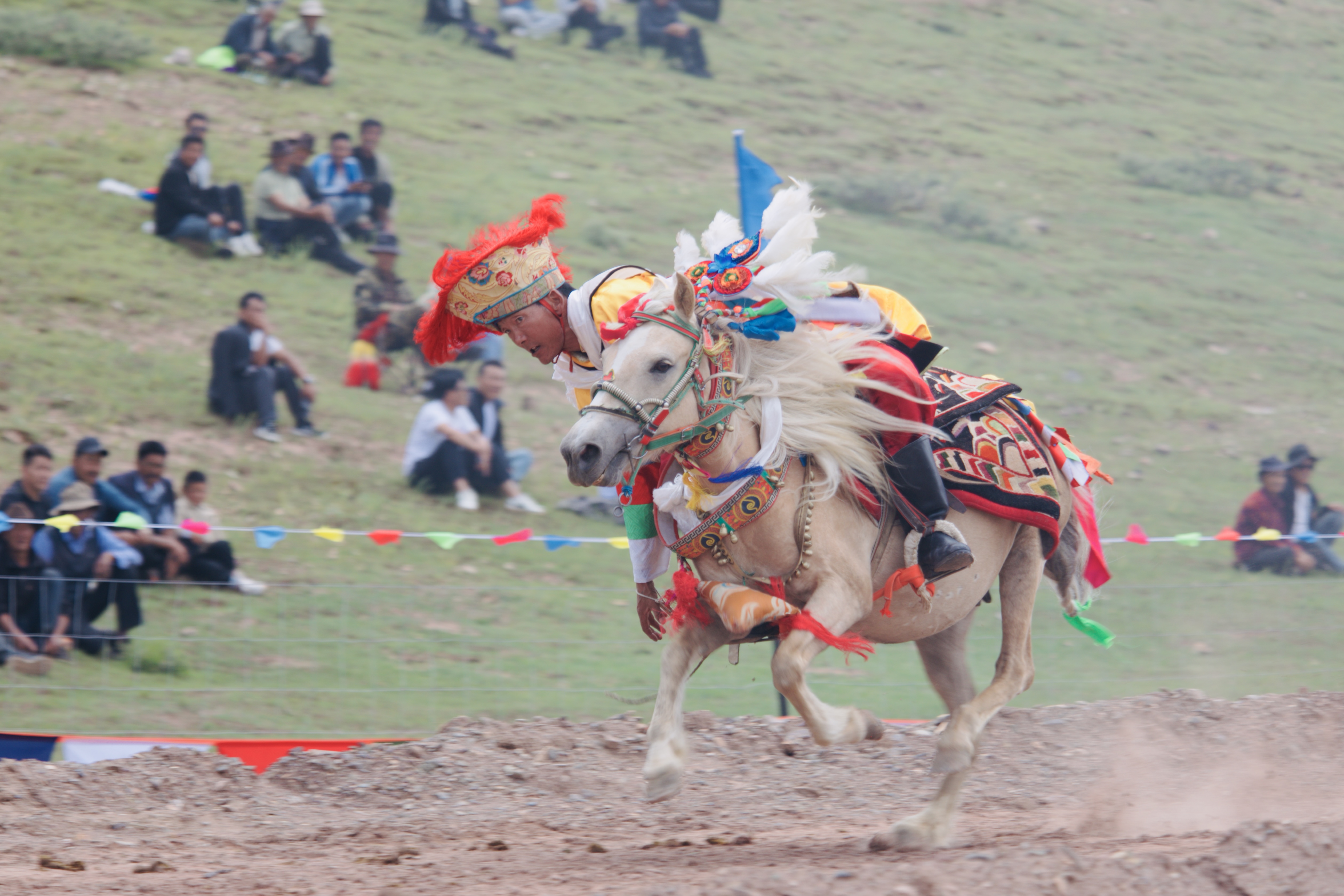 “望果節(jié)”是國家級非物質(zhì)文化遺產(chǎn),是藏民族歡慶豐收的傳統(tǒng)節(jié)日,已有1500多年歷史。圖為參加賽馬節(jié)的選手。