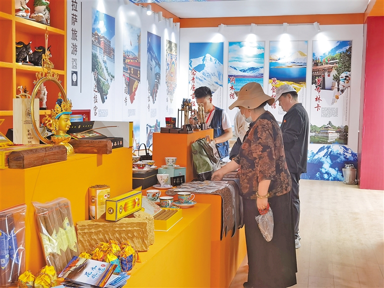 第二屆西藏文化藝術(shù)節(jié)期間,市民在選購非遺文創(chuàng)產(chǎn)品。記者 鄭璐 袁海霞 攝