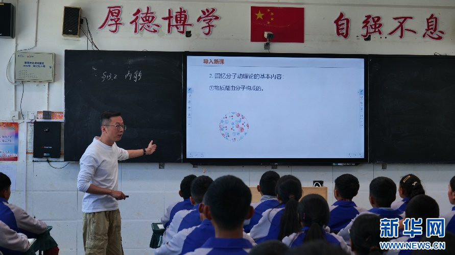 8月14日,援藏老師陸汶軍正在上物理課。新華網(wǎng)發(fā) 吳金朋攝