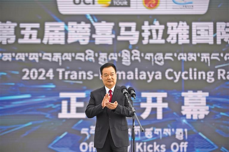 21日上午,2024中國西藏第五屆跨喜馬拉雅國際公路自行車極限賽在拉薩市布達(dá)拉宮廣場(chǎng)隆重開幕。自治區(qū)黨委書記王君正出席開幕式并宣布本屆比賽開幕。