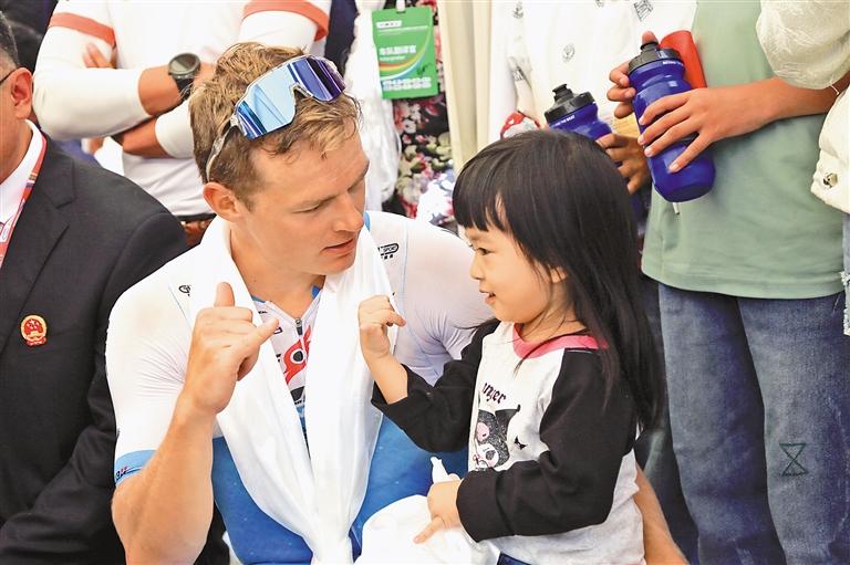 第一賽段第一名、來自飛銳蒙古洲際隊(duì)的LAAS Martin和當(dāng)?shù)睾⒆踊?。記?洛桑平措 謝筱純 王珊 攝