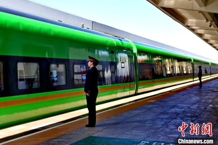 圖為暑運(yùn)期間從日喀則站開往拉薩站的復(fù)興號動車駛離車站。斗山得 攝