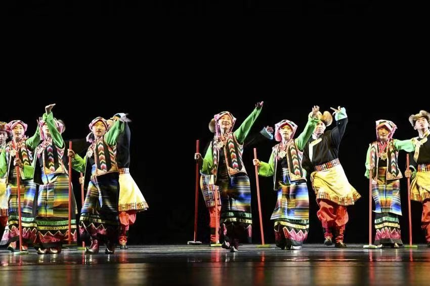 6月18日,拉薩北京實驗中學(xué)學(xué)生在國家大劇院表演民族舞蹈。(受訪者供圖)