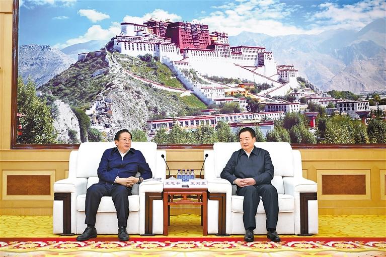 王君正代表自治區(qū)黨委、政府對湖北省黨政代表團來藏考察表示歡迎。他說,在深入貫徹落實黨的二十屆三中全會和第四次對口支援西藏工作會議精神之際,湖北省黨政代表團來藏考察、推進援藏工作,充分體現(xiàn)了湖北省委、省政府貫徹落實習近平總書記關于西藏工作的重要指示和新時代黨的治藏方略的自覺性和堅定性、責任感和使命感。湖北作為中部大省,近年來深入貫徹落實習近平總書記關于湖北工作的重要講話、重要指示批示精神和黨中央決策部署,圍繞“五個功能定位”,推動經(jīng)濟社會快速發(fā)展,為中國式現(xiàn)代化建設作出了積極貢獻。西藏工作在黨和國家工作大局中具有十分重要的戰(zhàn)略地位。自治區(qū)黨委不折不扣貫徹落實習近平總書記為西藏明確的“穩(wěn)定、發(fā)展、生態(tài)、強邊”四件大事,推動各項事業(yè)不斷取得新成效,呈現(xiàn)出一派欣欣向榮的良好景象。今年是全國對口支援西藏30周年,30年來湖北省委、省政府始終站在黨和國家戰(zhàn)略全局的高度,認真貫徹落實黨中央關于援藏工作的決策部署,緊扣受援地需求推進各項工作落地落實,為西藏長治久安和高質量發(fā)展作出了積極貢獻,西藏各族人民感恩在心。當前,西藏正處于建設社會主義現(xiàn)代化的關鍵時期,希望兩省區(qū)完整準確全面貫徹新時代黨的治藏方略,錨定在國家全局中的戰(zhàn)略地位,勇?lián)姑?、團結奮斗,攜手為強國復興偉業(yè)作出更大貢獻。深化交流合作,加強發(fā)展戰(zhàn)略對接,強化特色優(yōu)勢產(chǎn)業(yè)融合發(fā)展,揚長避短、優(yōu)勢互補,推動兩地人民共同富裕。堅持以鑄牢中華民族共同體意識為主線,進一步推動對口支援工作走深走實,鞏固教育、醫(yī)療等“組團式”援藏成果,激勵更多優(yōu)秀干部人才參與社會主義現(xiàn)代化新西藏建設。