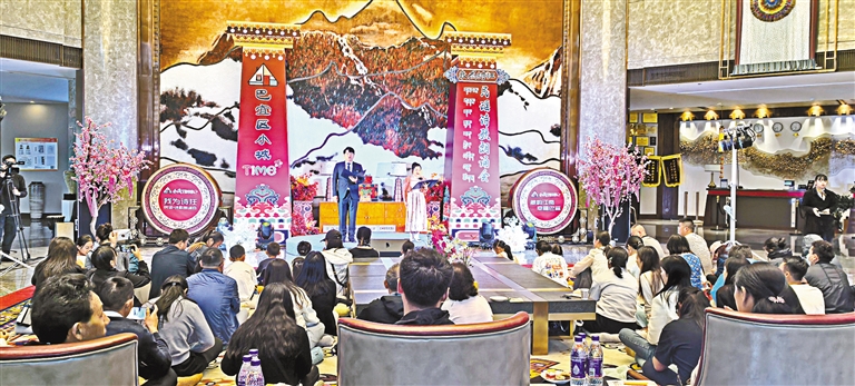 現(xiàn)場設(shè)置了工布藏族服飾比賽、傳統(tǒng)美食體驗及農(nóng)特產(chǎn)品試吃、藏骰體驗等活動。一場別開生面的非遺與美食的碰撞,讓市民、游客盡享“文化大餐”。來自巴宜區(qū)四鎮(zhèn)三鄉(xiāng)的蕎麥餅、酸奶醬、藏香豬、藍(lán)莓、玫瑰茶等出現(xiàn)在傳統(tǒng)美食體驗及農(nóng)特產(chǎn)品試吃活動中,吸引不少市民、游客駐足品嘗,近距離享受著非遺帶來的韻味與魅力。