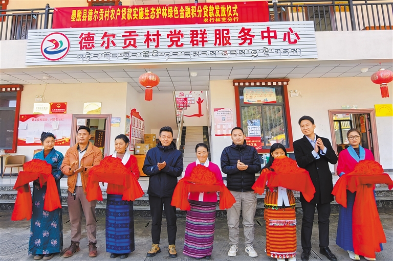 圖為農(nóng)行林芝分行墨脫縣支行推出生態(tài)護(hù)林綠色金融積分貸款發(fā)放儀式現(xiàn)場(chǎng)。