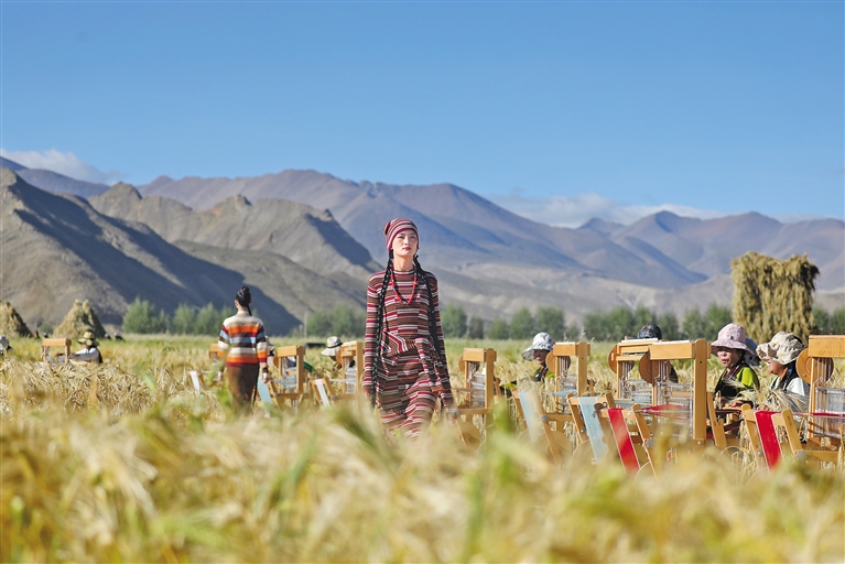 如果說(shuō)隨風(fēng)搖曳的金色青稞是江孜的“老名片”,那么從雪域高原走向國(guó)際奢侈品舞臺(tái)的氆氌已然成為“新名片”。