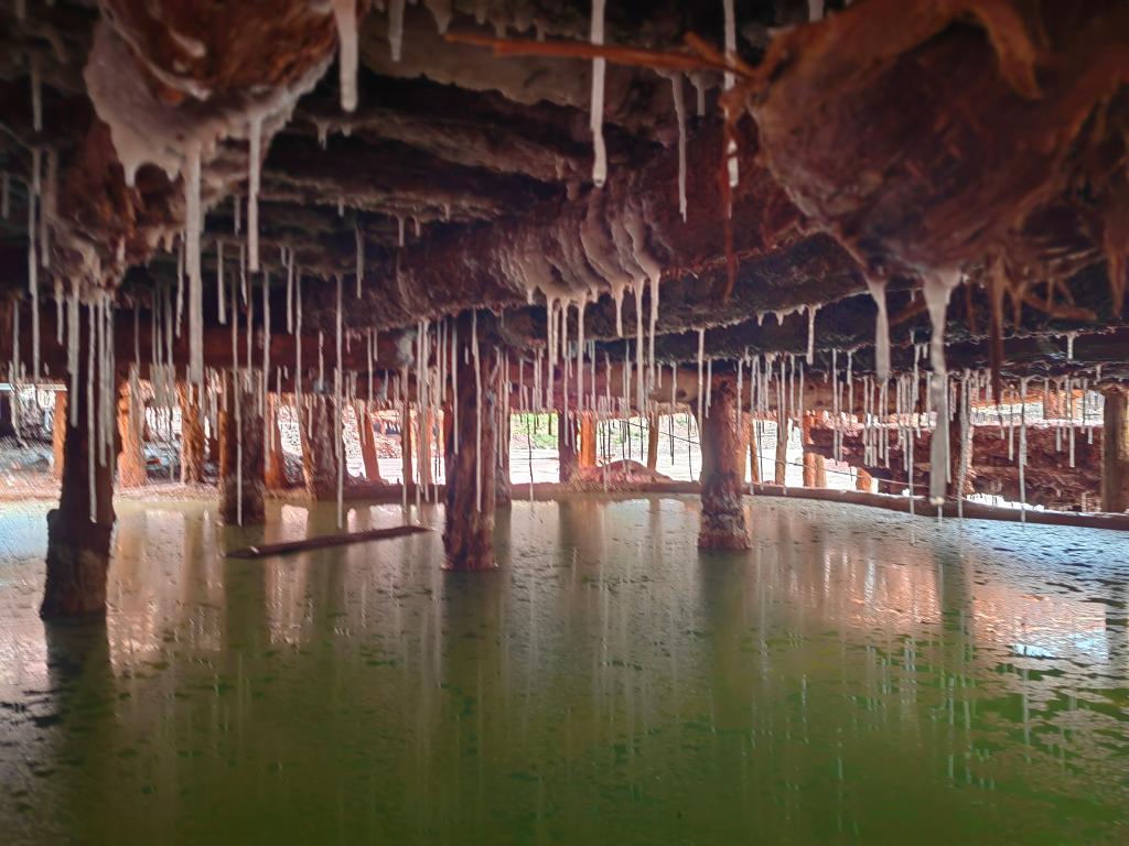 鹽田由多根木柱搭架。新華社記者侯韶婧 攝