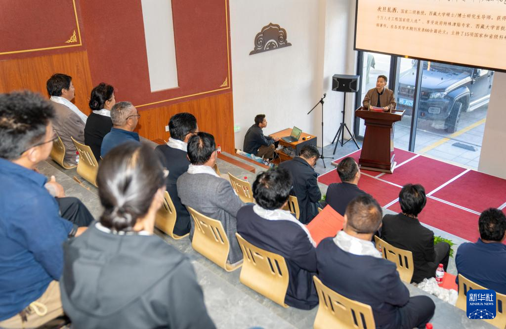 9月13日,西藏大學(xué)次旦扎西教授在現(xiàn)場(chǎng)進(jìn)行主旨發(fā)言。新華社記者 旦增尼瑪曲珠 攝