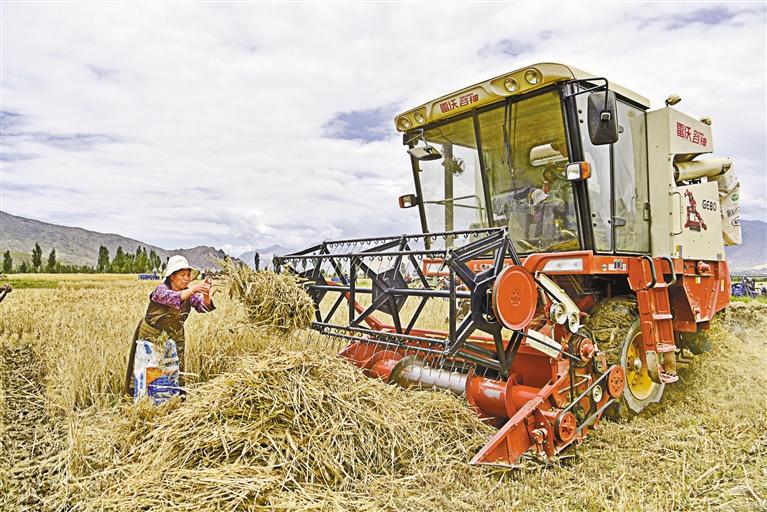 山南市扎囊縣扎其鄉(xiāng)朗賽嶺村青稞收獲現(xiàn)場。 新華社記者 張汝鋒 攝