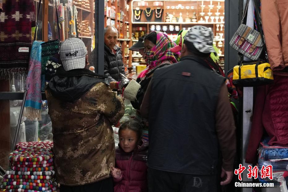 9月30日,游客在位于西藏阿里地區(qū)普蘭縣的唐噶邊貿(mào)市場(chǎng)選購(gòu)商品。中新社記者 崔楠 攝