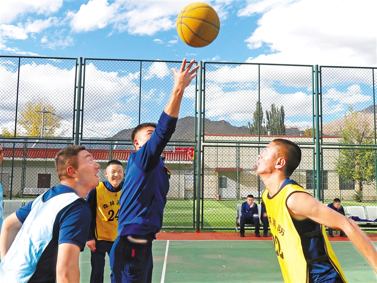 圖為西藏森林消防總隊新訓大隊開展籃球比賽。記者 劉倩茹 攝