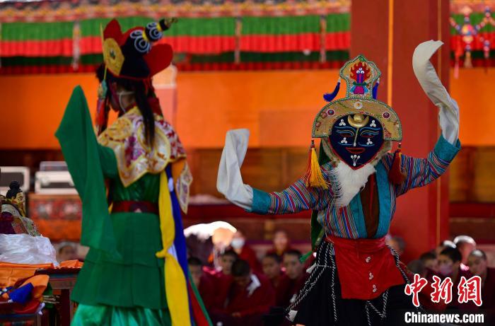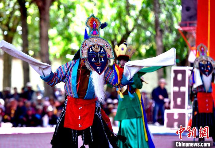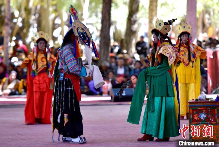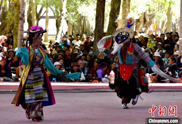 10月7日,西藏自治區(qū)日喀則市扎什倫布寺內(nèi)上演傳統(tǒng)八大藏戲之一《諾桑王子》,吸引僧俗民眾觀看。藏戲集說唱、表演、歌舞、文學(xué)于一體,有著600多年歷史,被譽為藏文化的“活化石”。中新社記者 李林 攝