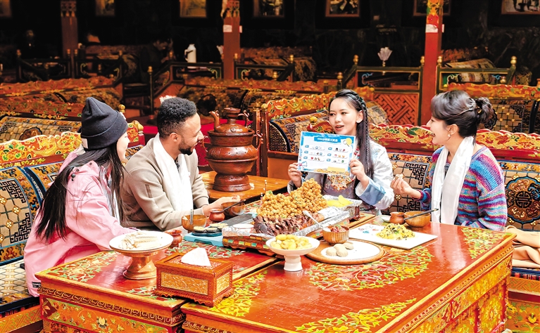 “在我們餐廳,經(jīng)常能看到不同民族、不同地方的人們同吃一道菜、共飲一壺茶的場(chǎng)景,大家其樂(lè)融融,就像一家人一樣?!辈惋嫹?wù)人員益西說(shuō)。