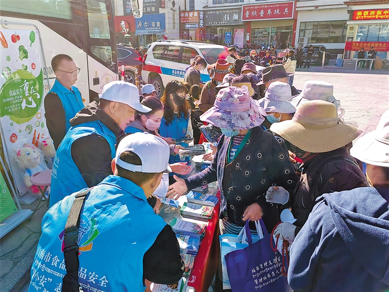 山南市食品藥品安全志愿服務(wù)隊向市民群眾發(fā)放食品藥品安全宣傳資料。記者 巴桑旺姆 攝