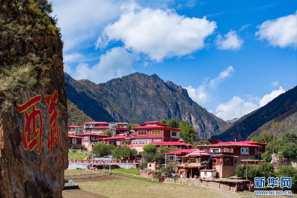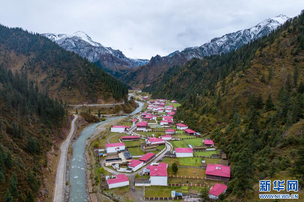 10月21日拍攝的“西藏解放第一村”昌都市江達縣崗?fù)写宀厥綐欠浚o人機照片)。新華網(wǎng) 旦增努布 攝