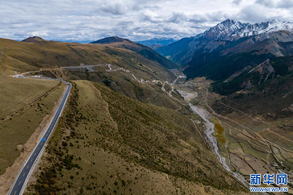 10月17日,在西藏昌都市卡若區(qū)境內(nèi)拍攝的鄉(xiāng)村道路(無人機照片)。新華網(wǎng) 旦增努布 攝