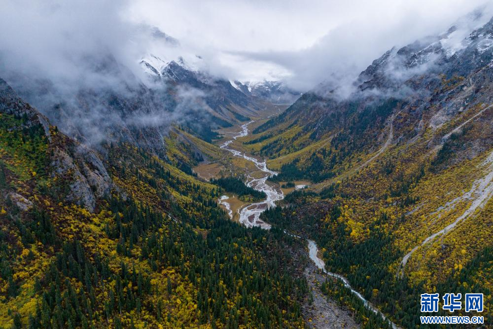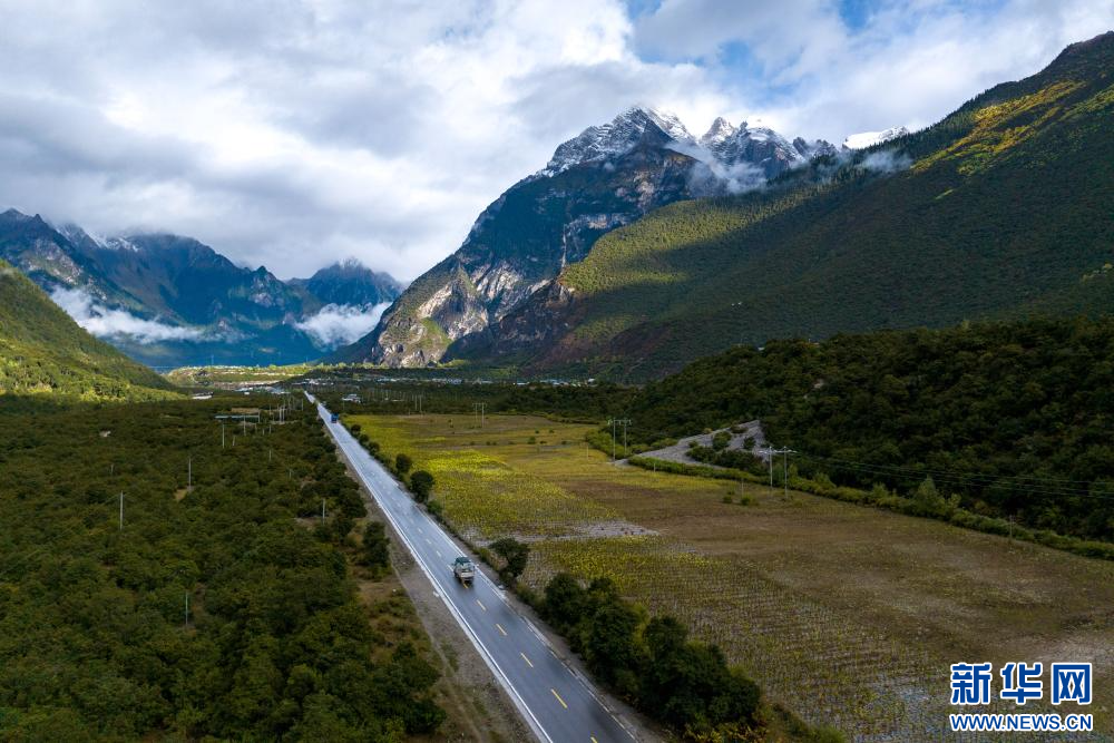 10月19日拍攝的川藏公路沿途風(fēng)景(無人機照片)。新華網(wǎng) 旦增努布 攝