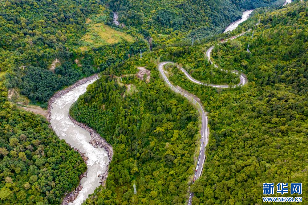 10月13日拍攝的川藏公路“怒江72拐”(無人機照片)。新華網(wǎng) 旦增努布 攝