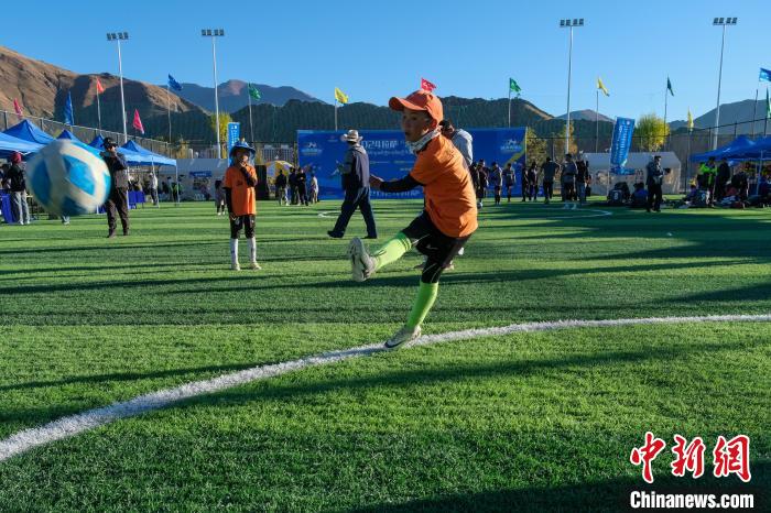 足球運(yùn)動(dòng)在拉薩擁有廣泛的基礎(chǔ),圖為10月26日下午,一群孩子在2024拉薩“村超”足球聯(lián)賽現(xiàn)場(chǎng)練習(xí)射門(mén)。中新社記者 江飛波 攝