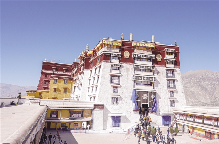 據了解,按照習俗慣例,每年藏歷九月前后,拉薩河谷地區(qū)雨季結束,天氣還沒完全變冷之前,布達拉宮就會開始一年一度的粉刷工作。從17世紀開始,粉刷布達拉宮已是300多年的傳統(tǒng)。布達拉宮每年的刷墻,是為了保護布達拉宮墻體結構,有效阻隔建筑外觀被風吹日曬、雨水沖刷等自然侵蝕,同時也能避免外墻顏料脫落,墻體結構老化等現(xiàn)象,確保布達拉宮建筑外觀能夠重煥新顏,保持靚麗如初的顏色。