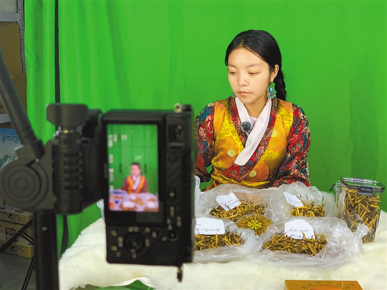 網(wǎng)紅“那曲拉姆”的原型系那曲市巴青縣瑪如鄉(xiāng)姑娘索朗巴央,在全網(wǎng)有400多萬(wàn)粉絲。索朗巴央自2023年5月5日直播銷(xiāo)售牛肉干、藏紅花等,促進(jìn)本地特產(chǎn)銷(xiāo)售,增加農(nóng)牧民收入?!D為“那曲拉姆”在直播間介紹西藏特產(chǎn)。受訪(fǎng)者提供