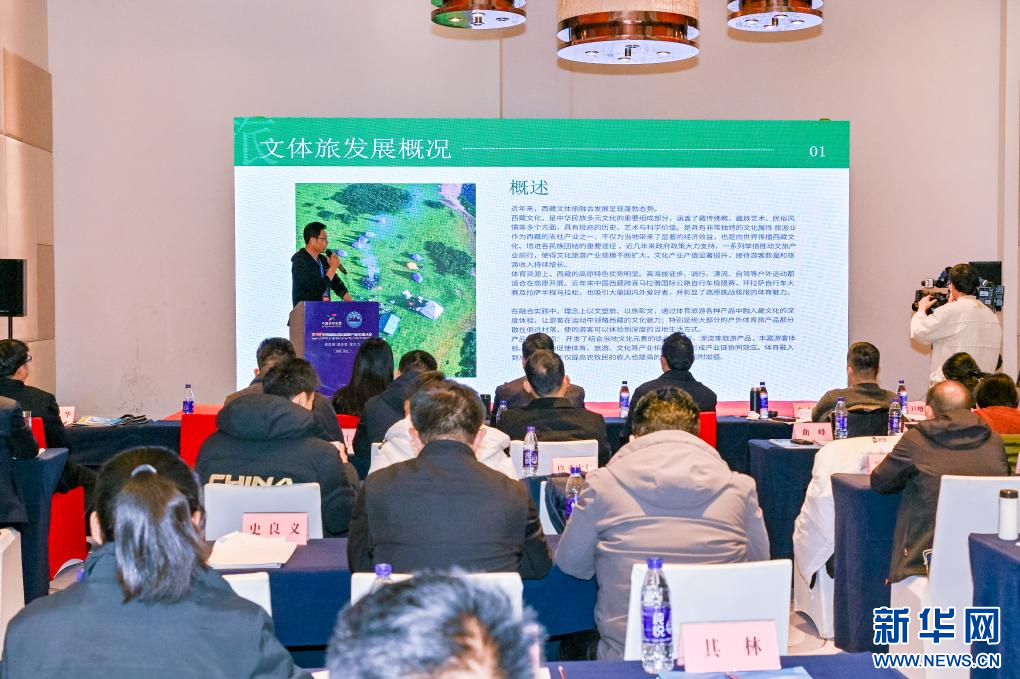 西藏專項旅游協(xié)會會長曲峰在大會上作主題交流。新華社發(fā)