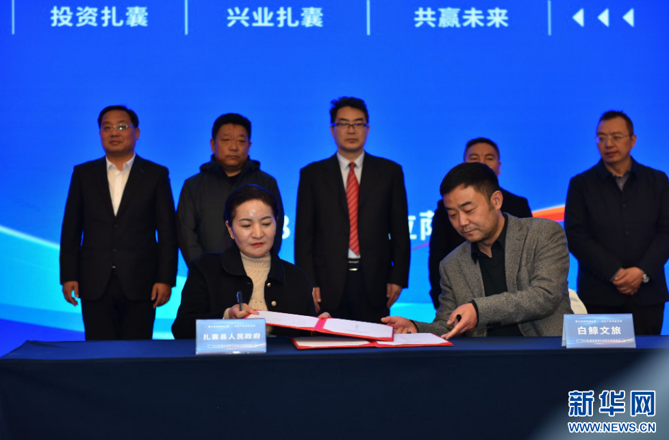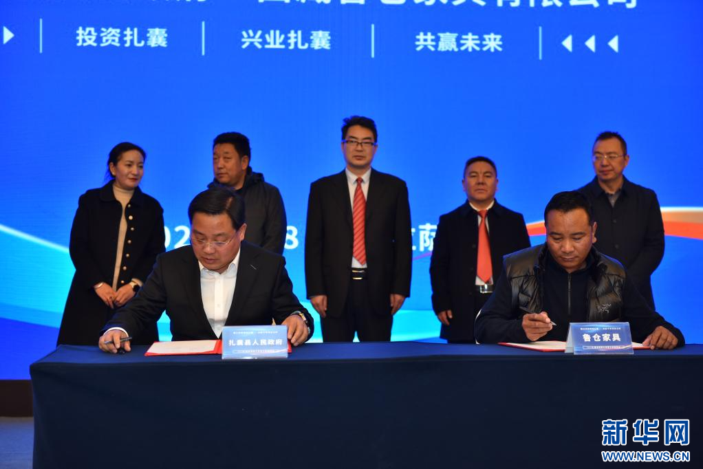 扎囊縣領導干部與意向落地企業(yè)在推介會現(xiàn)場簽約。(受訪對象供圖)