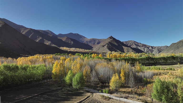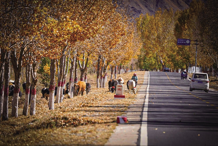 G318被稱為“中國景觀大道”,沿途壯麗絕美的風(fēng)光令人心醉神迷。恰風(fēng)和日麗的一天,記者一行驅(qū)車前往G318曲水段與達(dá)孜段。一路層林盡染,落葉飄飛,如詩如畫,美不勝收。