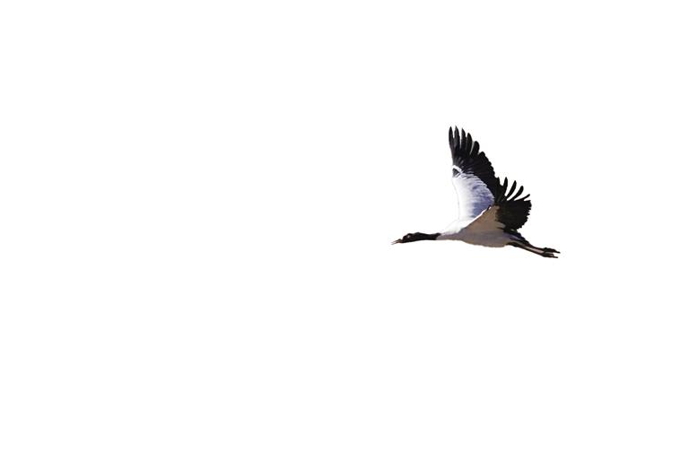 高原精靈黑頸鶴是世界上唯一一種生長(zhǎng)、繁殖在高原的鶴類。它們體態(tài)優(yōu)美,身姿挺拔,羽毛黑白相間,頭部和頸部那一抹黑色猶如佩戴的神秘面紗,增添了幾分高貴與神秘。每年10月中下旬,它們都會(huì)展開一場(chǎng)跨越千里的越冬之旅。它們飛越千山萬水,來到西藏的濕地、草原和農(nóng)田中尋找溫暖與食物,續(xù)寫著生命的傳奇。