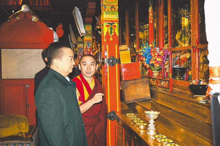 近日,自治區(qū)黨委書記王君正在日喀則市調研宗教工作。這是王君正來到扎西吉培寺開展調研。記者 旦增西旦 攝