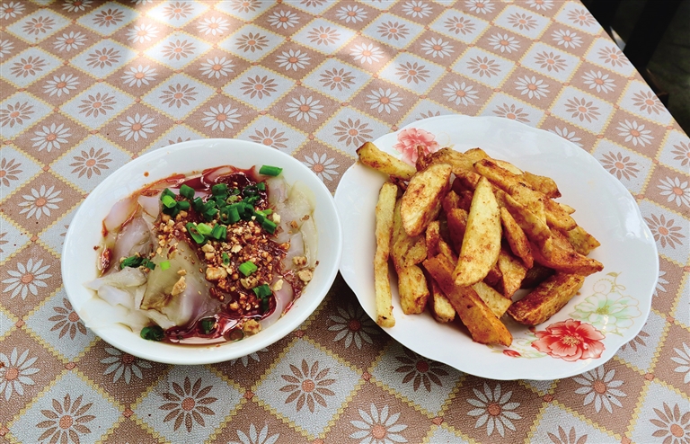 除了真實而美好的環(huán)境,涼粉店當然以涼粉為主打。卡擦涼粉店的涼粉價格親民,Q彈爽滑的涼粉配上店家特制的辣椒,再撒上一層花生碎,看似簡單口感卻層次豐富,讓人回味無窮。除了涼粉,卡擦涼粉店還供應(yīng)炸土豆、涼面等具有代表性的拉薩小吃。嗦粉吃面的同時,能真正感受到日光之城的溫暖和花朵的治愈,這樣的美好體驗可能就在你身旁的小店中。