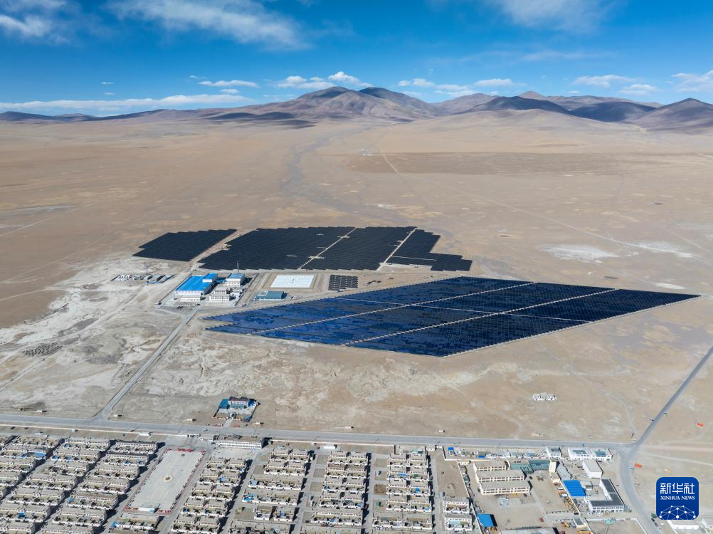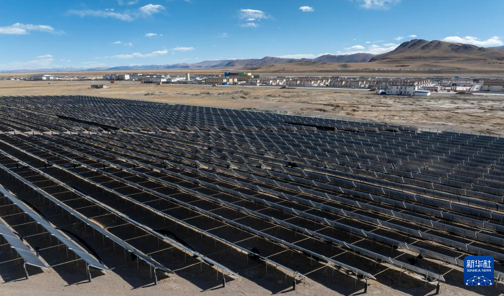 鳥瞰措勤縣城區(qū)清潔能源集中供暖特許經營項目的光伏陣列(無人機照片,11月20日攝)。新華社記者 姜帆 攝