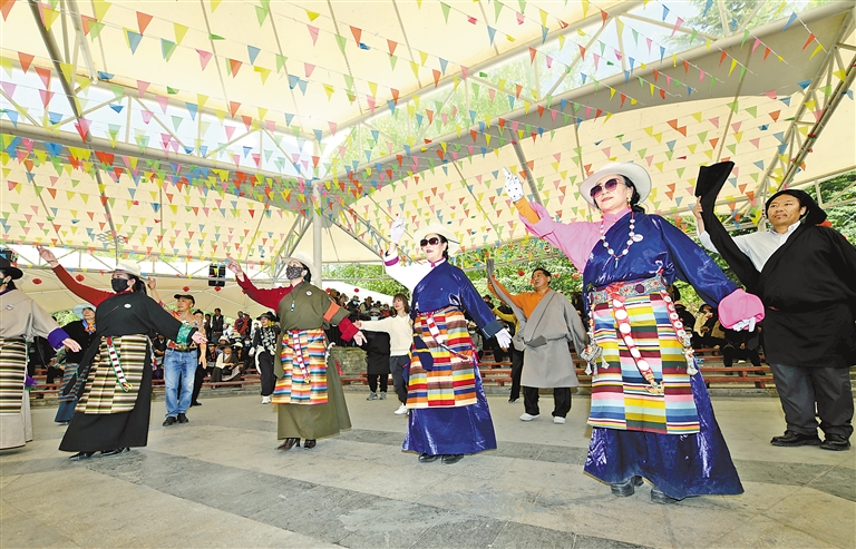 拉薩市策門林社區(qū)居民委員會聯(lián)合自治區(qū)人民醫(yī)院干部保健處黨支部在宗角祿康公園開展義診活動。記者 唐斌 攝