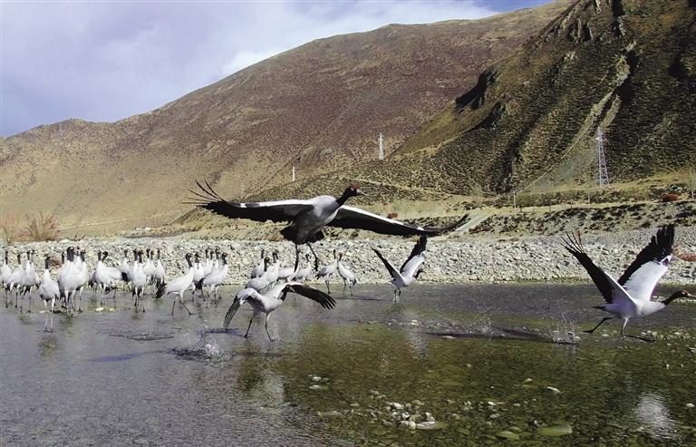 記者了解到,近年來隨著西藏高度重視黑頸鶴等野生動(dòng)物的保護(hù)工作,通過建立黑頸鶴國家級(jí)自然保護(hù)區(qū)、實(shí)施生態(tài)修復(fù)工程,有效改善了黑頸鶴的生存環(huán)境。據(jù)統(tǒng)計(jì),西藏境內(nèi)的黑頸鶴數(shù)量由不到3000只增加到1萬多只,種群數(shù)量也在持續(xù)增長。(圖由洛克 益西曲珍提供)