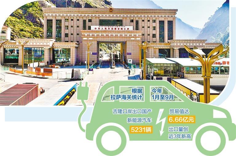 在位于日喀則市的吉隆口岸,裝載著一輛輛國(guó)產(chǎn)新能源汽車(chē)的大卡車(chē)正緩緩駛出國(guó)門(mén),駛向尼泊爾。今年以來(lái),新能源汽車(chē)出口形勢(shì)良好,貿(mào)易值屢創(chuàng)新高,成為西藏外貿(mào)新的增長(zhǎng)點(diǎn)。根據(jù)拉薩海關(guān)統(tǒng)計(jì),今年1月至9月,吉隆口岸出口國(guó)產(chǎn)新能源汽車(chē)5231輛,貿(mào)易值達(dá)6.66億元,出口量創(chuàng)近3年新高。