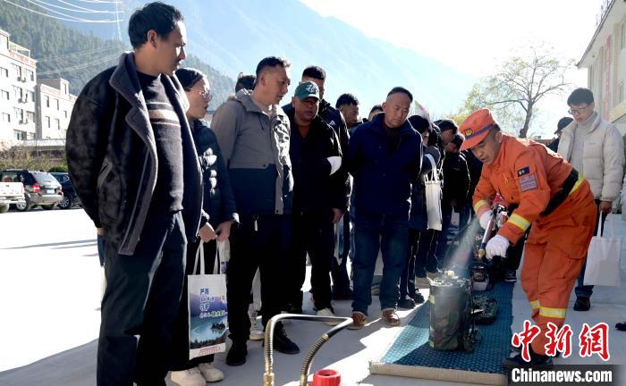 圖為森林消防員講解裝備使用方法。王澤棟 攝