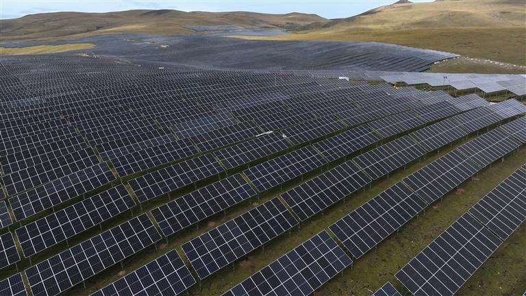 從昌都市區(qū)出發(fā)向東南方向,沿著蜿蜒的察芒公路,進入貢覺縣拉妥鄉(xiāng),遠遠就能看到漫山遍野的光伏板鱗次櫛比,宛如一片璀璨的藍色海洋。