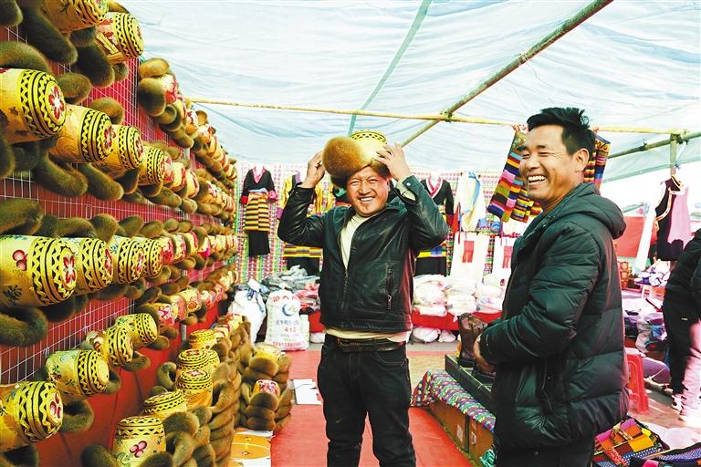為何如此熱鬧?原來這里是體驗周的“重頭戲”——冬季物資交流會。現(xiàn)場,從服裝服飾到農(nóng)特產(chǎn)品,從肉類食品到民族手工藝品,應(yīng)有盡有,可滿足不同消費(fèi)者的需求。