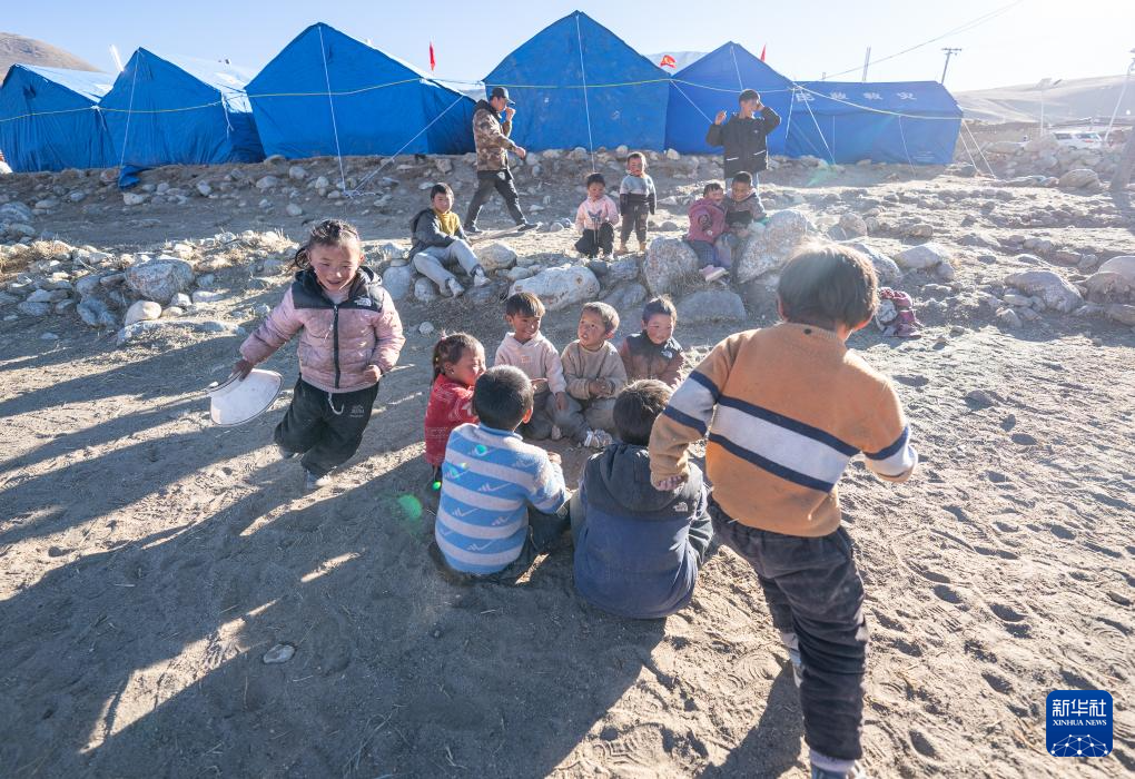 1月10日,孩子們?cè)诙ńY(jié)縣郭加鄉(xiāng)切村安置點(diǎn)玩耍。新華社記者 丁增尼達(dá) 攝