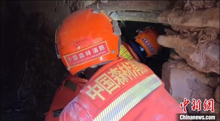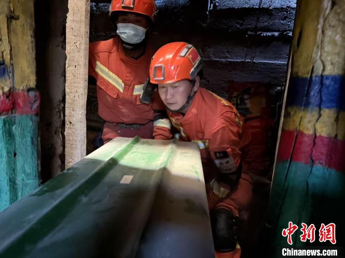 圖為日喀則市森林消防救援大隊隊員在受損房屋內(nèi)搜尋受災村民財產(chǎn)。米瑪次仁 攝