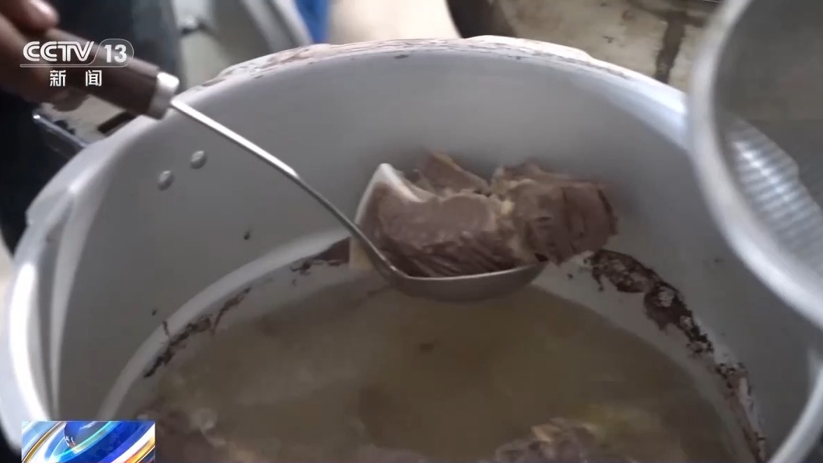 志愿者們每天會根據(jù)支援的物資,換著花樣做菜。不僅是集體做“大鍋飯”,我們發(fā)現(xiàn),很多人家開始自己“開小灶”了。我們也記錄下了他們在帳篷里的第一次開火。