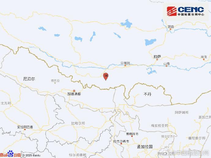 據(jù)中國地震臺網(wǎng)官方微博消息,中國地震臺網(wǎng)正式測定:1月13日20時58分在西藏日喀則市定日縣(北緯28.45度,東經(jīng)87.52度)發(fā)生5.0級地震,震源深度10千米。