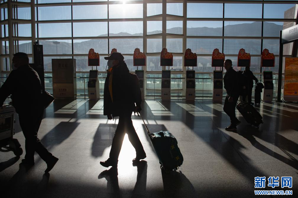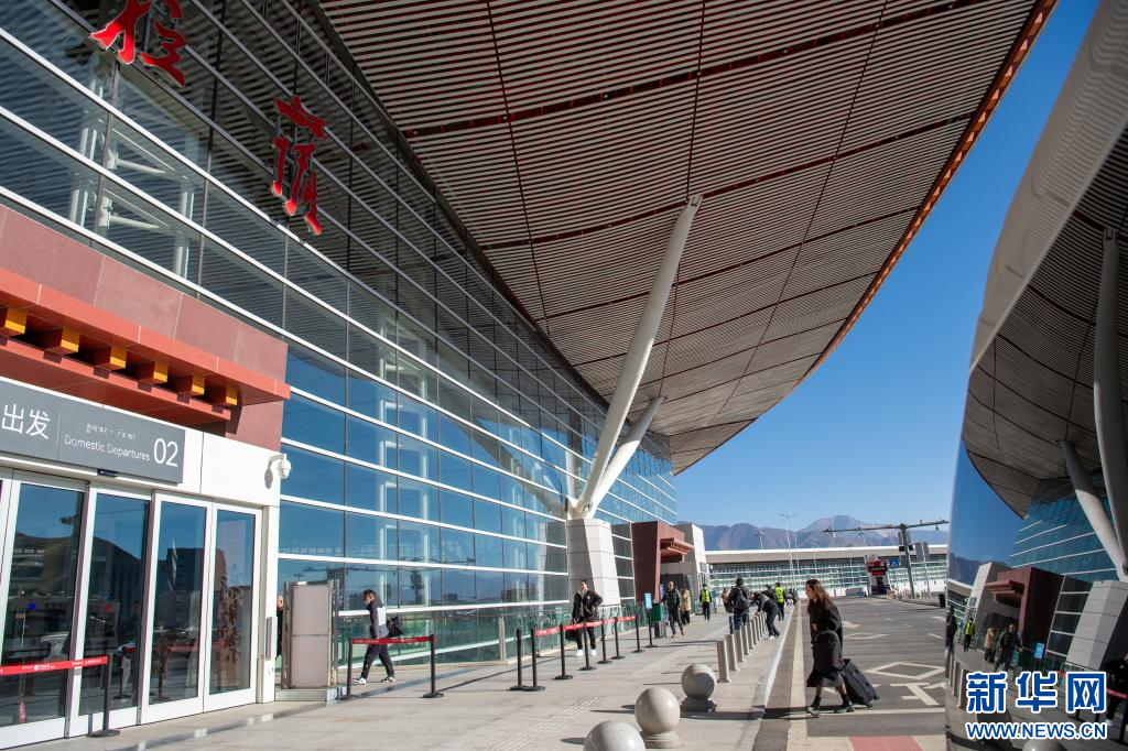 1月14日拍攝的拉薩貢嘎國際機場出發(fā)口。新華網 旦增努布 攝