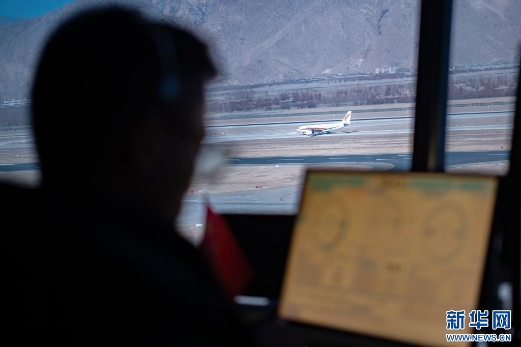 1月14日拍攝的拉薩貢嘎國際機場新塔臺。新華網 旦增努布 攝