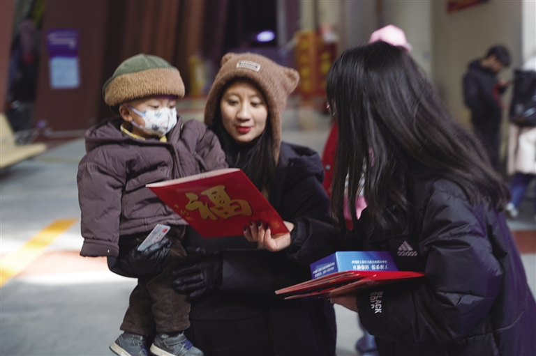 1月14日15時(shí)許,拉薩火車站候車大廳人頭攢動(dòng),熱鬧非凡?;剜l(xiāng)的人們臉上都洋溢著幸福的笑容,期待著歸家的旅途。“你好,送你們一副對(duì)聯(lián),祝你們新春快樂(lè)?!焙蜍噺d內(nèi),自治區(qū)總工會(huì)的工作人員將一副副喜慶的對(duì)聯(lián)送給踏進(jìn)火車站的人們,為他們送上新春的祝福和溫暖。