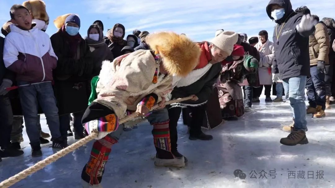 賽場上,傳統(tǒng)冰上項目亮點紛呈。牛嘎滑冰車(個人)賽中,選手身輕如燕,技巧嫻熟,在冰面上風(fēng)馳電掣;木制滑冰車(個人)和親子賽同樣扣人心弦,無論是個人賽的奮勇爭先,還是親子賽的默契配合,都讓觀眾們目不暇接。自由滑冰賽里,大家展現(xiàn)著冰雪運動的自由與奔放。團隊項目更是將氣氛推向頂點。冰上拔河,大家腳蹬冰面、咬緊牙關(guān)、全力拉扯,每一寸繩子的移動都牽動著眾人的心。冰上接力賽中,選手交接棒時的默契配合、全力沖刺,傳遞著團結(jié)與拼搏的力量。吶喊聲、歡呼聲交織在一起,在夯錯湖畔久久回蕩。