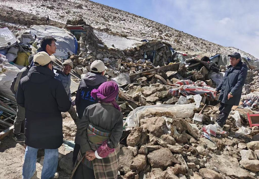 這次是政府工作人員第二次來(lái)到該村,核實(shí)災(zāi)情。珠桑一行人一到村里,開(kāi)始查看房屋和羊圈倒塌廢墟,詢(xún)問(wèn)牲畜傷亡和物資受災(zāi)情況。