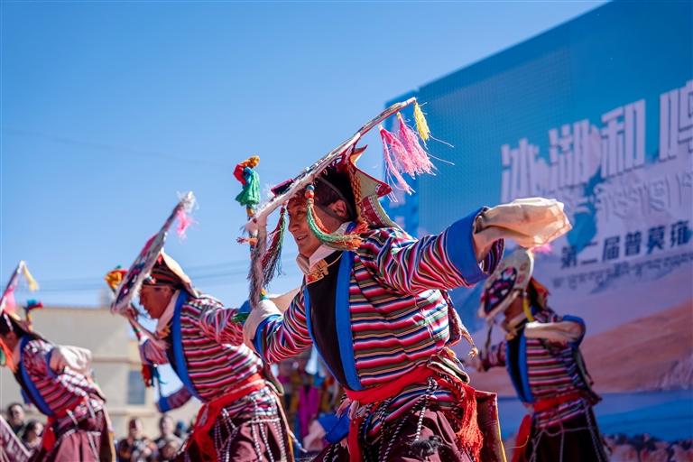 活動在浪卡子縣打隆鎮(zhèn)推瓦村舉辦。普莫雍錯冬季封凍后,會形成如夢如幻的幽藍冰面,因此被贊譽為“中國貝加爾湖”。每年2月前后,當湖面完全冰封,推瓦村村民便會集結(jié)羊群,趕著它們踏上冰面,前往湖心島過冬,這一延續(xù)千年的冰上趕羊傳統(tǒng),承載著深厚的歷史文化底蘊。